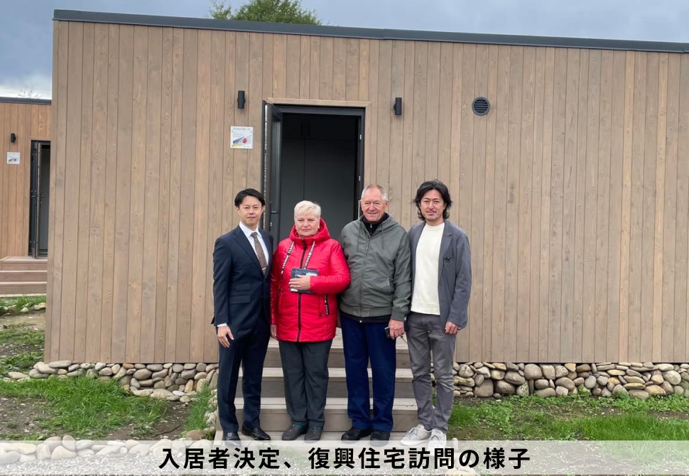 2022年4月には、第一回目の寄付プロジェクトとして緊急支援ならびに仮設住宅建築支援プロジェクトを行い、在日ウクライナ大使館へ寄付金の贈呈およびウクライナ現地で仮設住宅を建設・寄付いたしました。これらに対し、ウクライナ大使や入居者から感謝の声をいただいております。