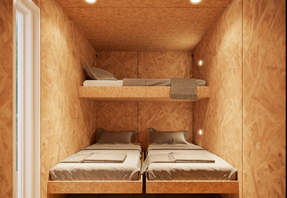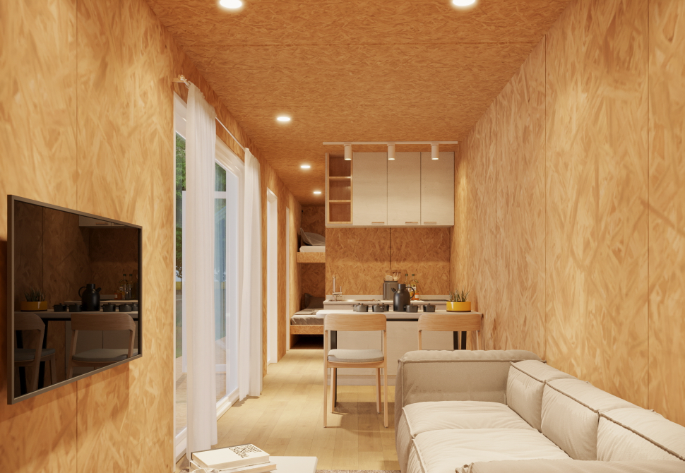 - ①延床面積約25㎡というコンパクトな設計でありながら、水道・通信・空調等のインフラが完備、必要な家具も一通り揃っており、入居後すぐに生活を始めることが可能。